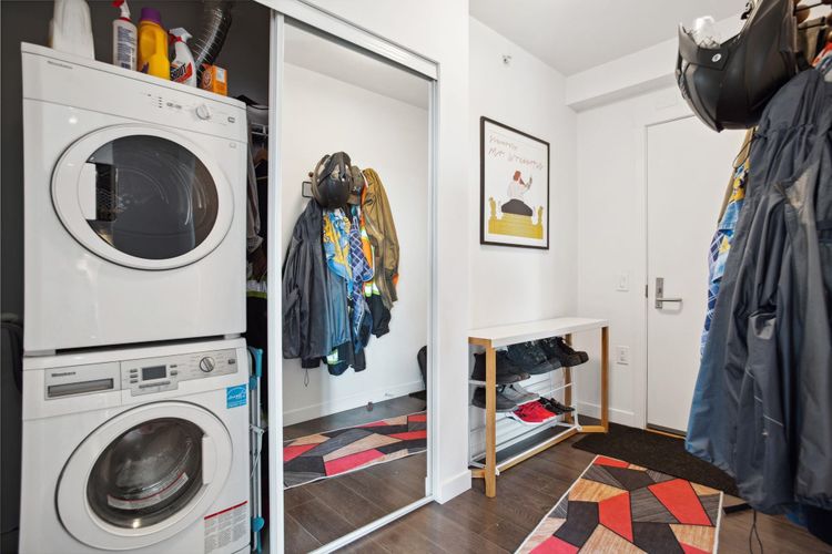 $765 per ft in an 8 year old concrete building! Welcome to 501-983 E Hastings in the contemporary Strathcona Village complex. This 2018-built concrete building offers urban living with great amenities, including a fantastic communal patio with unobstructed water and mountain views! The spacious layout features open living and dining areas, a wonderful kitchen with stainless appliances and a moveable island. With a sizeable storage room, in-suite laundry, and one parking stall included, this home covers all the essentials. The central, convenient location provides easy access to downtown and transit options, making it an excellent choice for those seeking a well-connected, modern lifestyle. Short Term Rentals Allowed. Some Furniture can be included. Open House Sun Mar 22nd, 2-4