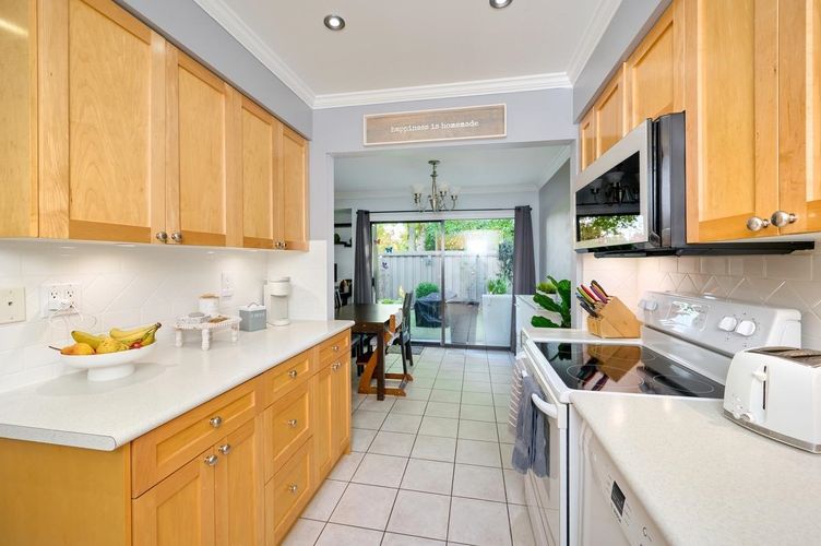 BEAUTIFULLY maintained home in a family-friendly community! Enjoy MODERN comfort with numerous upgrades including newer appliances, several smart home features, newer toilets, and all newer windows upstairs. This CORNER UNIT has two skylights that provide ample lighting. LARGE fully fenced backyard for entertaining and includes a BIG storage shed & astroturf. Fantastic amenities—heated outdoor POOL, guest suites, & more. TWO dedicated side-by-side parking stalls. Backs onto Walter Lee Elementary in a SAFE, QUIET setting. Localized alarm included. Pet friendly—cats & LARGE dogs welcome! Central location, close to shopping, community centre & transit. CALL today!