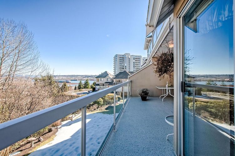 WOW! This home is a fabulous opportunity to own in one of New West's Premier locations and Strata's. This 3 level, 2700+ sq ft home was renovated in 2020: New laminate flooring, New Kitchen: Tile flooring, appliances, counters/cabinets etc. Top floor has 3 bedrooms, new engineered wood flooring, 2 updated bathrooms. Fabulous Ensuite Bathroom in large principal bedroom with W/I Closet & its own veranda to enjoy River and Mtn views. Bottom floor is full height and enjoys a great size recroom with gas fireplace, and walk out patio to Glenbrook Ravine Park. 4th bedroom, music or media room and 4th renovated bathroom. Double garage with additional parking out front. Strata will be undergoing building envelope upgrades in 2026, MAKING IT AWESOME and BETTER THAN EVER!