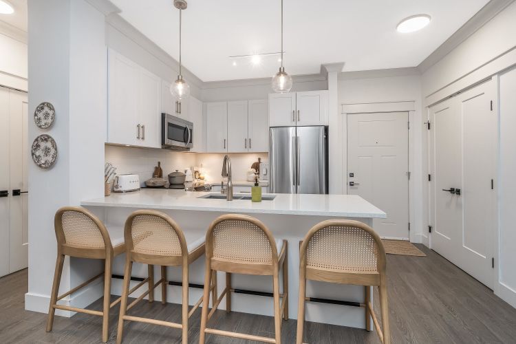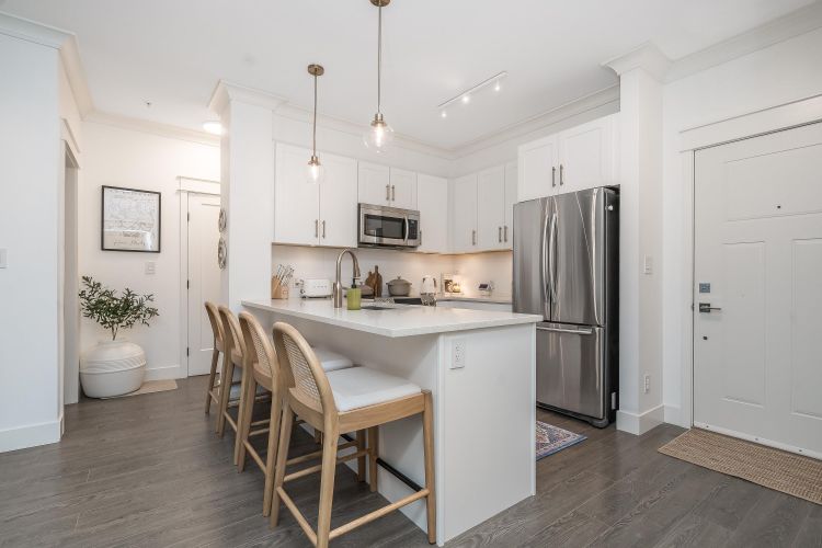 The epitome of comfort and elegance. Nestled in the heart of Murrayville, this stunning 2 bedroom 2 bath condo is a true gem that seamlessly combines modern luxury with cozy warmth. As you step inside this beautiful condo, you'll be greeted by a spacious floor plan that effortlessly flows from room to room. The Master bedroom is a true sanctuary. Not only does it boast ample space, but it also features heated floors that ensure you're nice and comfy! Beautiful Kitchen featuring quartz counter tops. Outdoor living is a breeze with not one, but two private patios. Whether you want to enjoy your morning coffee in the sunrise or host a cozy dinner party under the stars, these patios offer the perfect settings for all activities., dedicated laundry room and steps to everything you might need.