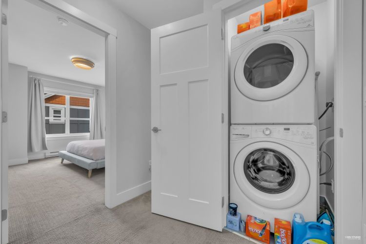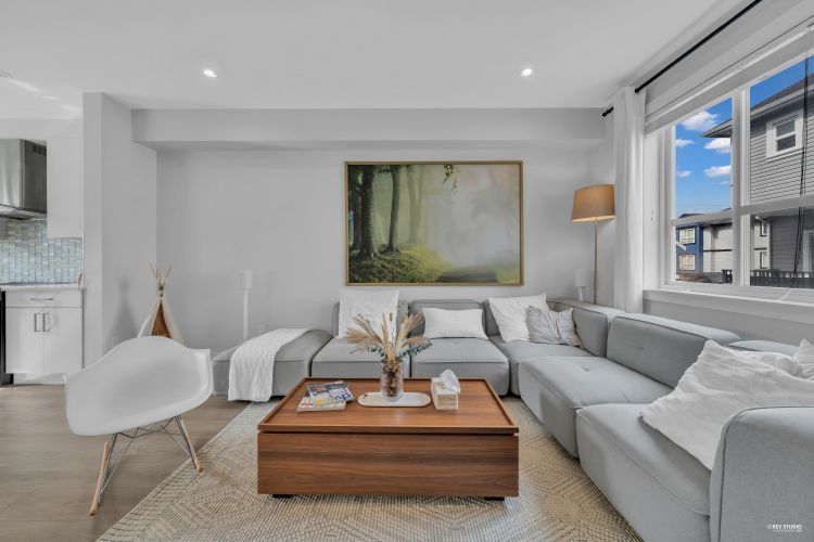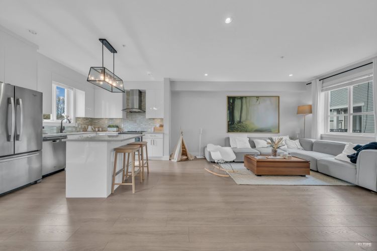 Side-by-side garage with EV outlet and south-facing exposure with exceptional privacy! Located in the lower-density part of Willoughby Heights, this bright and airy 3-bed, 2.5-bath, 1,451 SF home in LOTUS LIVING is well cared for by the original owners. Developer upgrades include a chimney-style hood fan and built-in microwave, plus low-maintenance laminate flooring on the first set of stairs. Modern kitchen features full-size appliances and stone counters, generous living and dining spaces ideal for families. Thoughtful additions include a built-in nook with shelves, Mysa thermostats, an August smart lock, window screens, and an EV outlet. Children’s outdoor playground and walk to the upcoming 20-acre Smith Athletic Park & the future middle and secondary schools. OH Sat & Sun 2pm - 4pm.