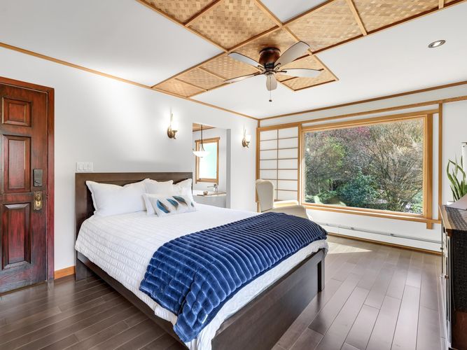 An award-winning garden estate paired w/ a charming Victorian-style residence on 1.21 acres.This truly one-of-a-kind property offers an extraordinary blend of artistry, tranquility, and timeless design. Masterfully designed and constructed by renowned Japanese master craftsman Hayato Ogawa, every stone and plant was thoughtfully selected and placed with intention. Enter through the traditional stone pillar gate and step into a serene sanctuary—where nature, architecture, and craftsmanship come together in perfect harmony. The grounds feature multiple water elements, highlighted by a dramatic 12-foot waterfall, creating a peaceful and immersive environment. A spectacular 50+ ft pavilion showcases one of the largest private living roofs in North America, experience it to fully appreciate it.