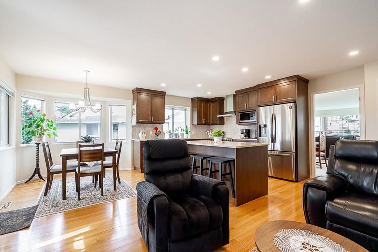 Welcome to sought-after Ocean Park! This beautifully maintained rancher sits on a quiet cul-de-sac with standout curb appeal and a sunny, private south-facing yard. Inside, you’ll find a stunning updated kitchen with rich cabinetry, quartz counters, waterfall backsplash, and stainless steel appliances—opening seamlessly to bright, inviting living spaces. Air conditioning, Fresh paint, updated lighting, and modern vanities add to the turnkey feel. The spacious layout flows to a large south-facing deck, perfect for entertaining. Oversized primary retreat with patio access and a spa-like ensuite. Just minutes to Crescent Beach, White Rock Beach, Ocean Park Village, and scenic trails. Walk to Ray Shepherd Elementary.