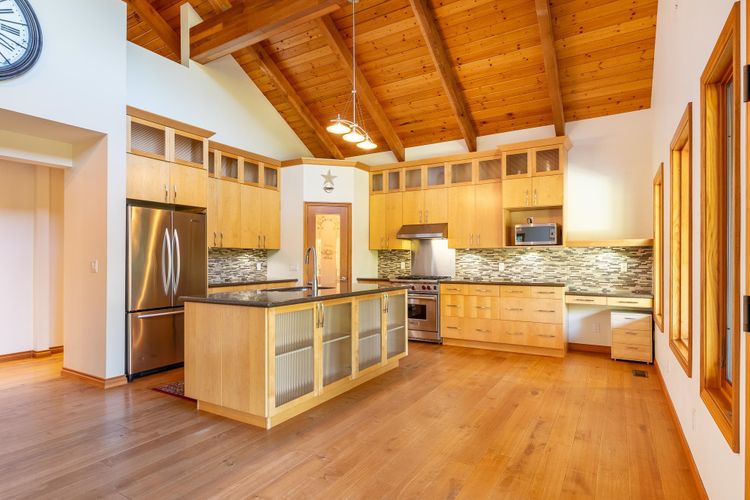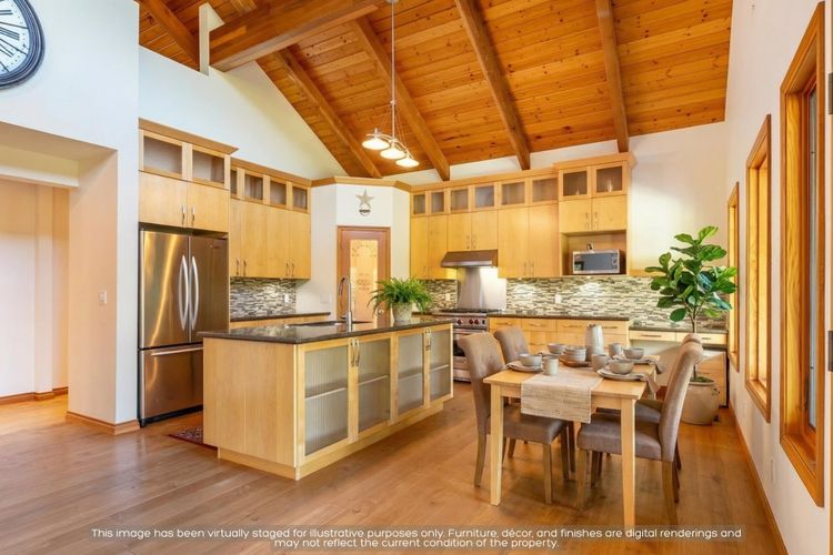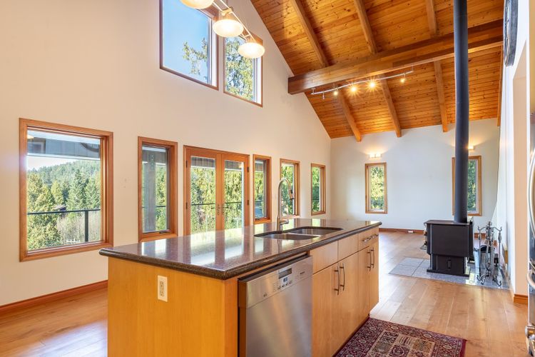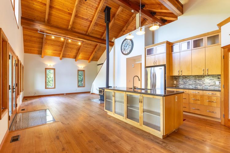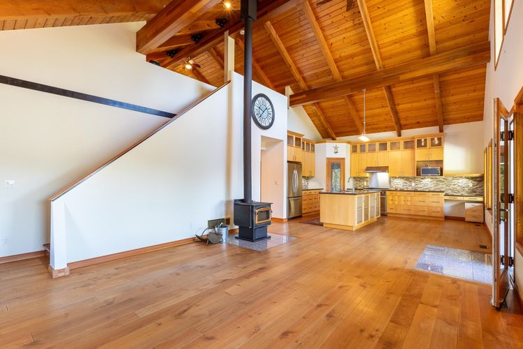 Custom Craftsman-style home built in 2006, thoughtfully designed for comfort, function, and West Coast living. The main floor features an open-concept layout with vaulted ceilings, rich maple flooring, and beautiful millwork throughout. Enjoy ocean sunsets from the living room or relax on the spacious covered deck. The kitchen is a dream for any home chef, complete with a walk-in pantry, premium appliance package, incl WOLF gas range. Practical upgrades include a durable metal roof, forced air heat pump with air conditioning, and hot water on demand. A freestanding wood-burning fireplace adds warmth and character to both the main living area and the generous multi-use loft above. The ground level offers a cozy, 2-bdrm unauthorized suite with separate laundry & private cov'd deck.