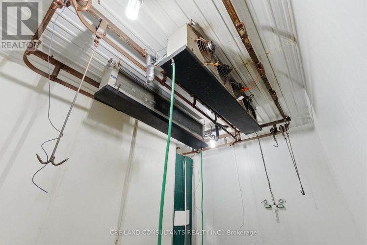 The property serves as an abattoir & butcher shop operating previously as Len & Patti's Butcher Block and recently under new management by Noble Cuts with special licensing (OMAFRA & HMA Certified). The building has a footprint of approximately 6,006 SF with an additional 2,497 SF on the second floor. There is also a small garage on the property. The remainder of the property is vacant agricultural field. The size of the property is approximately 3.18 acres. The two-storey brick and metal-clad building was built in the early 1990's and remains the same today. The interior of the building includes a storefront for the butcher shop, inspector and general office spaces, staff rooms, storage rooms, slaughter floor, lairage, chiller rooms, tripe room, meat cutting, processing and packaging rooms. Property is zoned as Highway Commercial with several permitted uses such as carwash, abbatoir, convenience store, motor vehicle dealership, nursery, parking lot, professional office, nursery, restaurant, automotive store, etc. (id:26452)