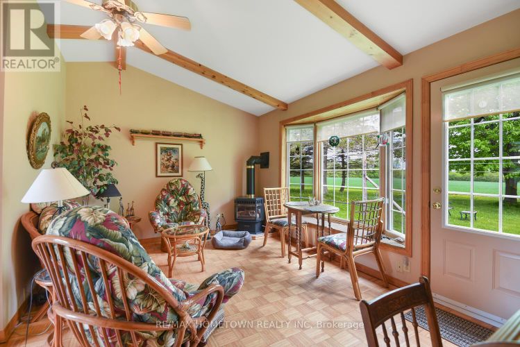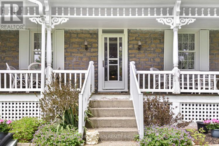 Welcome to this exceptional country property at 7460 County Road 28, a rare opportunity for those who appreciate the timeless beauty and craftsmanship of historic stone homes. Built in the 1840s, this distinguished residence has been lovingly cared for by the same owner for more than 60 years, reflecting its enduring quality and charm. A long, tree-lined driveway welcomes you to the home, creating an immediate sense of privacy and elegance. The expansive front porch provides the perfect place to relax and take in peaceful country sunrises with your morning coffee. Entering through the west entrance, you are greeted by a spacious family room featuring high ceilings and large windows that flood the space with natural light. A conveniently located two-piece powder room is easily accessible from this area. The large eat-in kitchen offers generous cupboard and counter space, ideal for preparing family meals or entertaining. The inviting living room provides plenty of space for gatherings and features a cozy fireplace for added warmth and ambiance. The second floor offers three comfortable bedrooms along with a conveniently located laundry room, providing both comfort and practicality. Set on approximately 100 acres, the property includes beautiful wooded areas with 20 acres maple, ash, balsam cedar, and ironwood trees, 40 tillable acres - creating a peaceful natural landscape to explore and enjoy. The home is set well back from the road and framed by charming split-rail fencing, adding to its picturesque rural setting. Outbuildings include a barn with stanchions, silo, a large workshop ideal for a mechanic or hobbyist, and an original historic log home, offering a fascinating glimpse into the property's past. For added comfort, the furnace was updated in 2021, and a propane fireplace in sunroom provides additional warmth. This is a truly special property combining historic character, privacy, and expansive land, offering endless possibilities for country living. (id:26452)